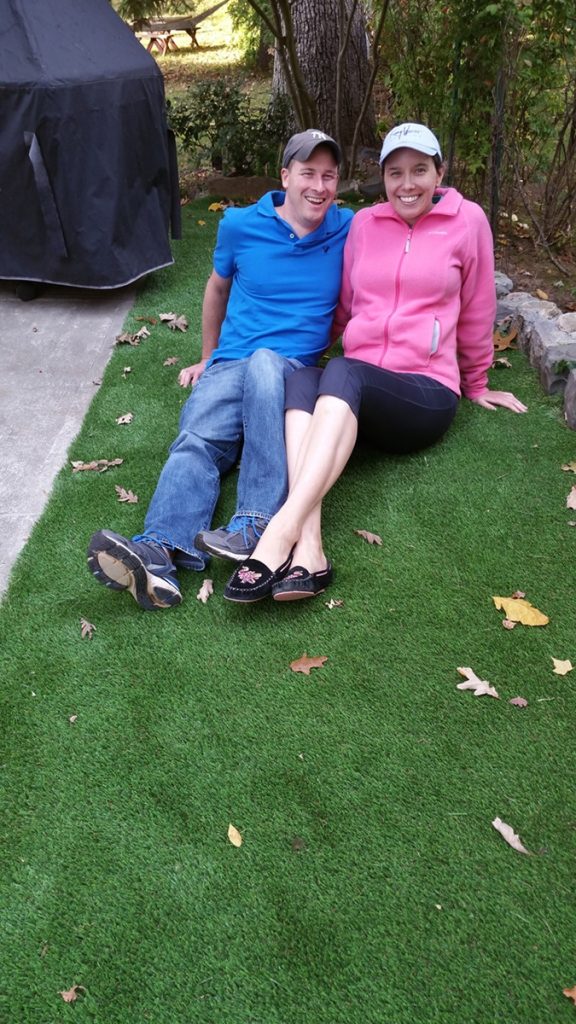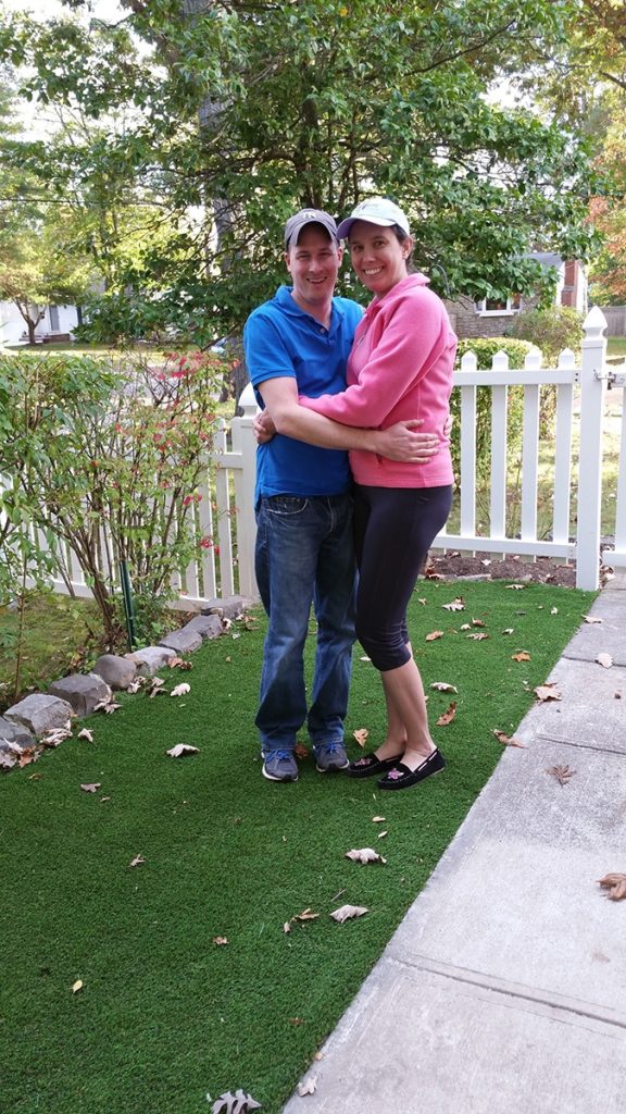 Katie was diagnosed with triple-negative breast cancer 11 days before her 30th birthday in December 2014. She had to begin an aggressive chemotherapy regimen in January 2015, which was followed by a bilateral double mastectomy, radiation and reconstructive surgery. Due to the nature of the treatments, Katie and her husband, Rich, had to spend a lot of time at their New Jersey home and looked for projects that would bring new life to their surroundings. One of the projects they wanted to complete the most was to put artificial grass next to their patio with the dream of creating an at-home oasis.