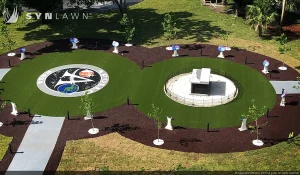 - Commercial – SYNLawn Miami, NASA: SYNLawn Miami of SYNLawn South Florida helped NASA celebrate the 50th Anniversary of the Apollo 11 Mission with a special installation of artificial turf in the rocket viewing area of Kennedy Space Center’s Visitors Complex. Thirty-five thousand square feet of SYNAugustine 547 was selected to accompany a one-of-a-kind fabricated logo to replace the worn natural grass around the launch spectator area just outside of the Apollo/Saturn V Center.