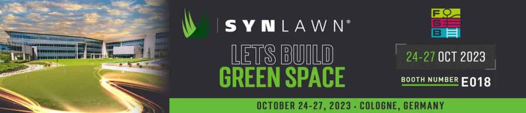 Cologne, Germany, — SYNLawn, a leading global manufacturer and unrivaled innovator of sustainable artificial turf and synthetic surfacing products, announced that it will make its debut as an exhibitor at FSB 2023, the International Trade Fair for Public Space, Sports and Leisure Facilities. More than 16,000 attendees from over 100 countries will gather in Cologne from October 24-27, for the world’s biggest event for the industry. SYNLawn will join its sister brands, FormaTurf, Melos and Polytan, to showcase its sustainable products to fellow exhibitors and trade visitors from all over the world.