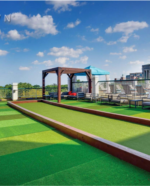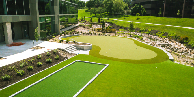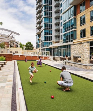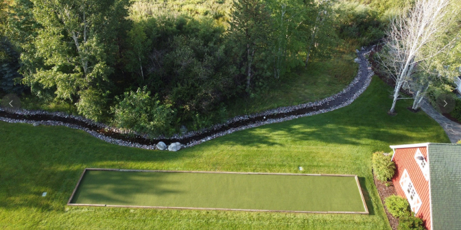 The durable turf withstands rain, heat and cold, making it the ideal year-round solution for bocce enthusiasts.